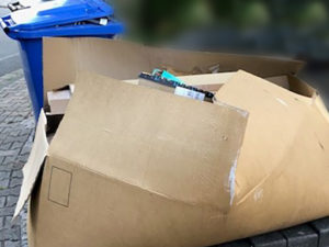 Beachten Sie bitte, dass die Nebenlagerungen vom Müllwerker per Hand verladen werden. Demzufolge müssen die Maße und das Gewicht so sein, dass es von Hand problemlos über Kopf in die Schüttung des Müllwagens geworfen werden kann (Maximalmaße 50cm * 50 cm * 50cm).