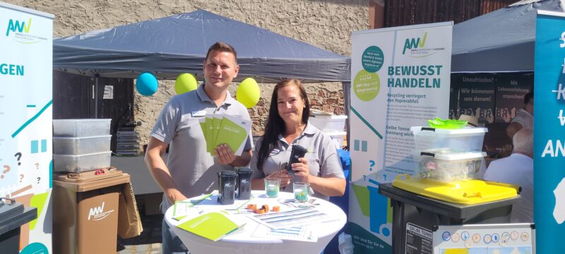 Nicht nur das Wetter hat es mehr als gut gemeint, auch am Stand des AWV ging es heiß her. Der Geschäftsführer, Joachim Freitag, sowie die Mitarbeiterin, Nadine Haas, die den AWV dort persönlich vertreten haben, können von einer erfolgreichen Veranstaltung berichten. Neben vielen Fragen zur Entsorgung, den Mülltonnen oder allgemein zum Abfuhrsystem, freuten sich die Bürger über die neue Abfallfibel sowie über die kleinen Mini Mülltonnen.